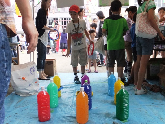 おおきなサイコロを振って景品がもらえるゲーム、スーパーボールすくい、輪投げがあり、小さな子どもから中学生までおよそ700人が楽しみました。
