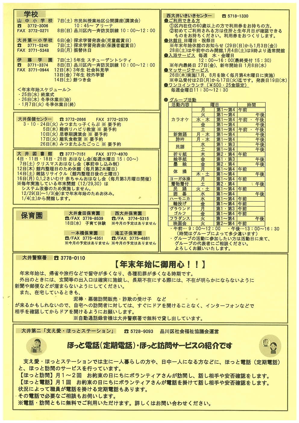 トップページ > 施設案内 > 区役所・地域センター > 地域センターからのお知らせ > 大井第二地域センター > 大井第二地域センターからのお知らせ > 「大井第2地域情報ニュース 2024年12月号」