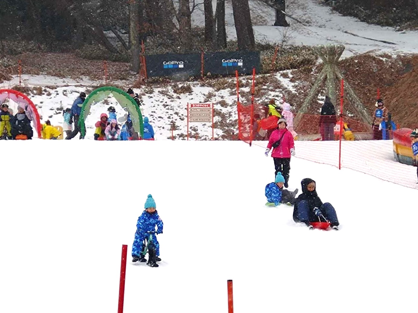 その後は帰りの集合時間まで自由行動です。初めての方はスクールで教わったり、リピーターの親子が急斜面へ向かったり、小さな子たちがキッズパークで雪遊びをしたり、ちょっと疲れたら休憩所前で雪だるまを作ったり…各々が楽しい時間を過ごしました。