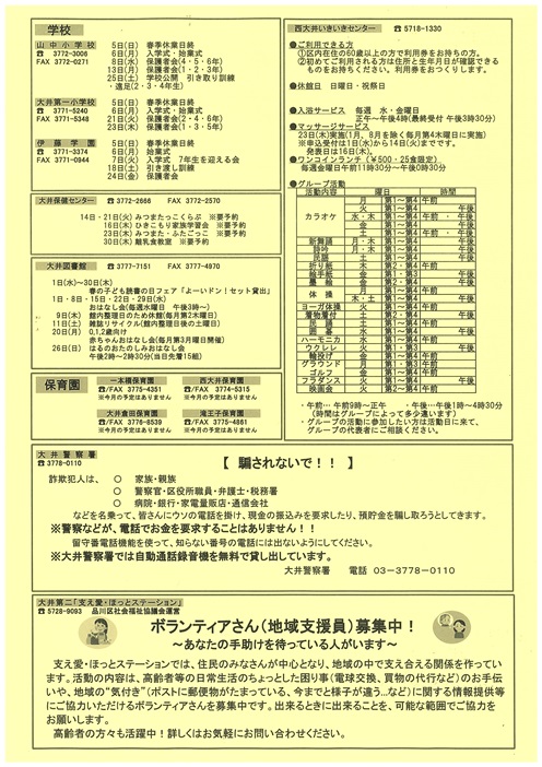 「大井第2地域情報ニュース」は、大井第二地域センター管内の学校や児童センター、保育園、大井保健センター、大井図書館、