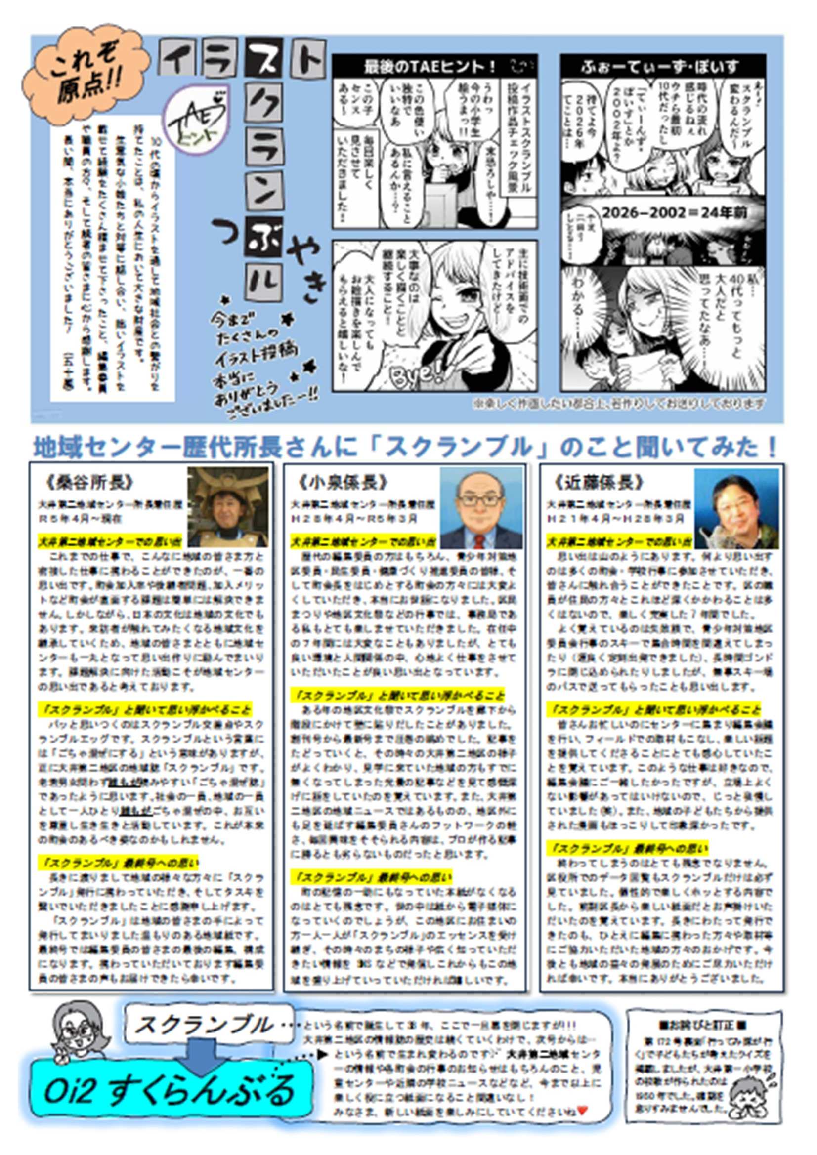 大井第二地区の地域ニュースは、次号から「Oi2すくらんぶる」という名前に変わりますが、今後も発行していきます!