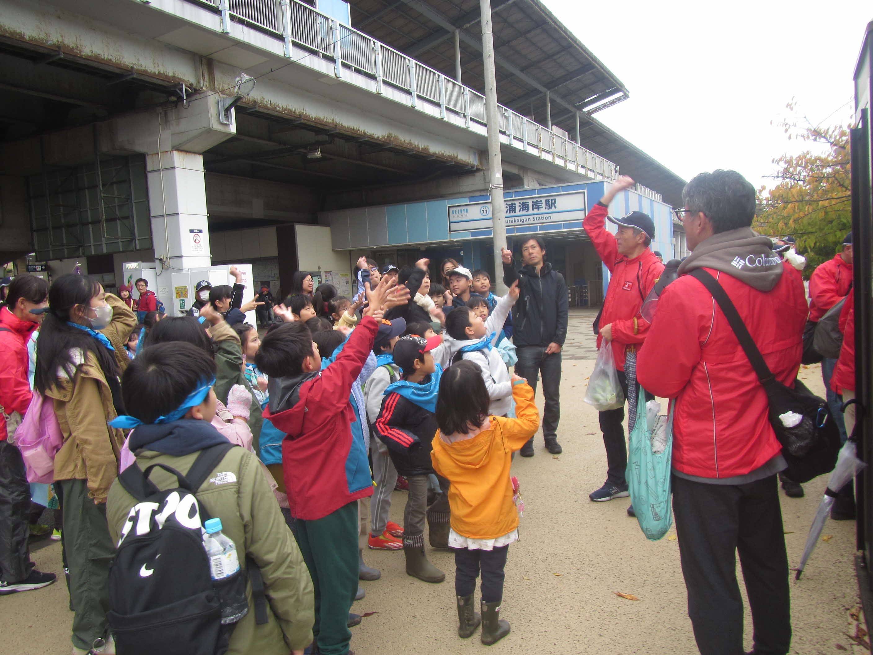 みかん狩りを楽しんだ後は、近くの砂浜までハイキングをし、砂浜あそびを行う予定でしたが、雨のため中止となってしまいました。代わりに、三浦海岸駅前でじゃんけん大会を行い、景品を受け取った子どもたちはとても嬉しそうにしていました。