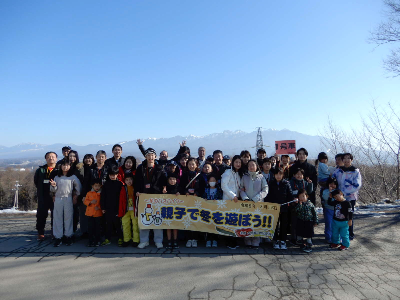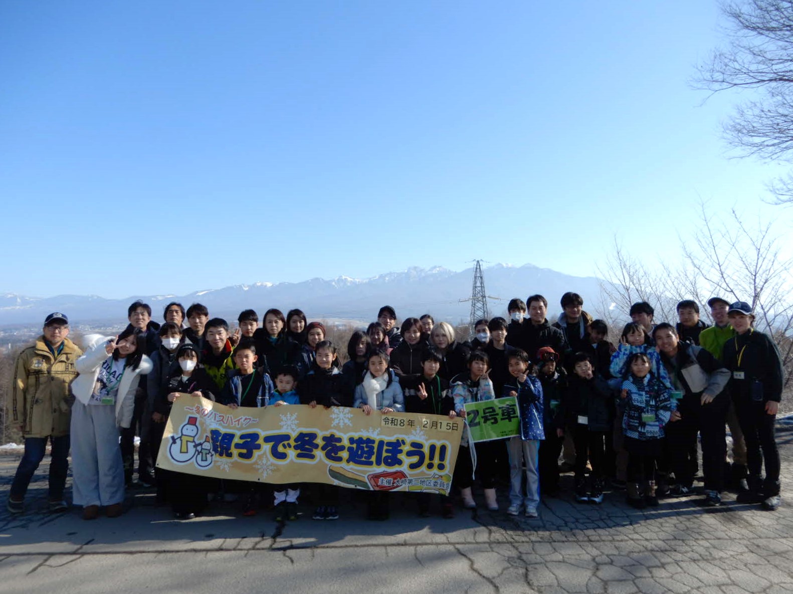 令和8年2月15日(日)、大崎第二地区委員会主催「親子で冬を遊ぼう!!~冬の親子バスハイク~」を開催し、43組109人の親子が参加しました。
