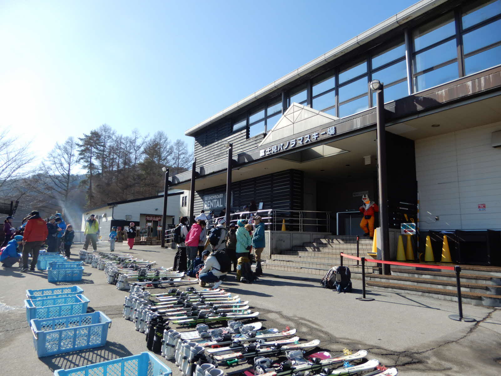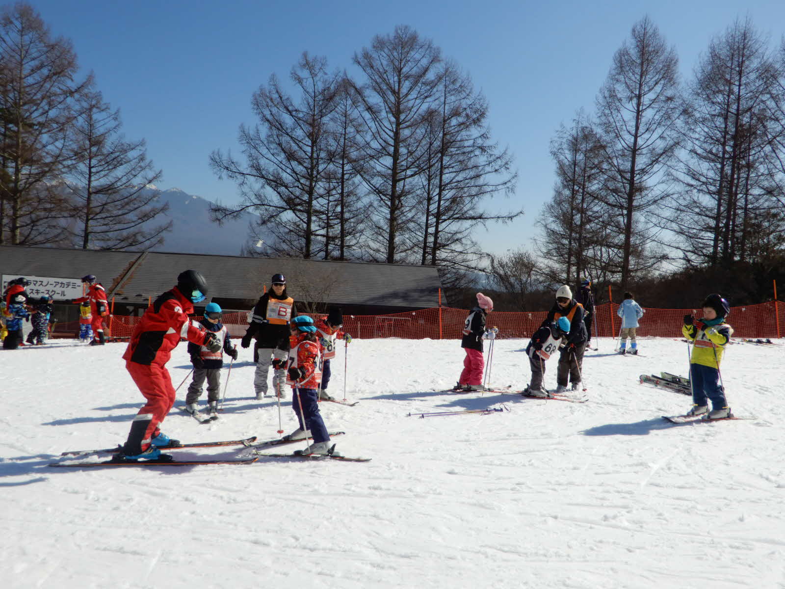 早朝に大崎を出発し、午前9時半頃に長野県の富士見パノラマリゾートに到着。今年も晴天の八ヶ岳を背景に、バス号車ごとの集合写真を撮ることができました。初参加の家族も多くいましたが、地域との交流・つながりを深め親子で冬ならではの遊びを楽しんでいました。