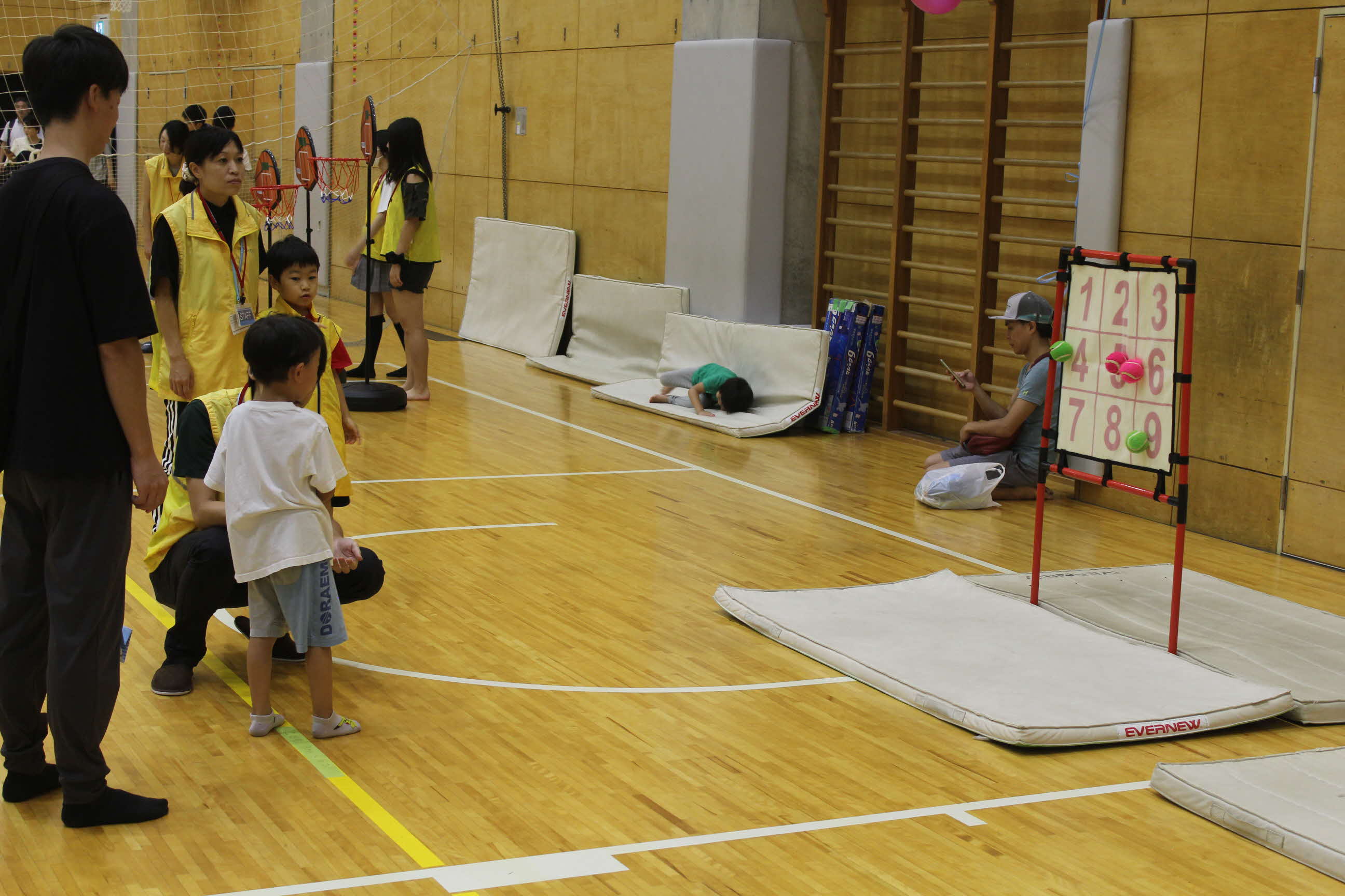 一方、体育館(アリーナ)では、品川第一地区管内の小中学校PTAをはじめ、「北品川児童センター」「品川第一地区委員会」などの全7団体が、ストラックアウトや型抜き、缶バッジ作りといった子どもコーナー(ミニゲームコーナー)を開催し、子どもたちは様々なアトラクションを楽しみました。