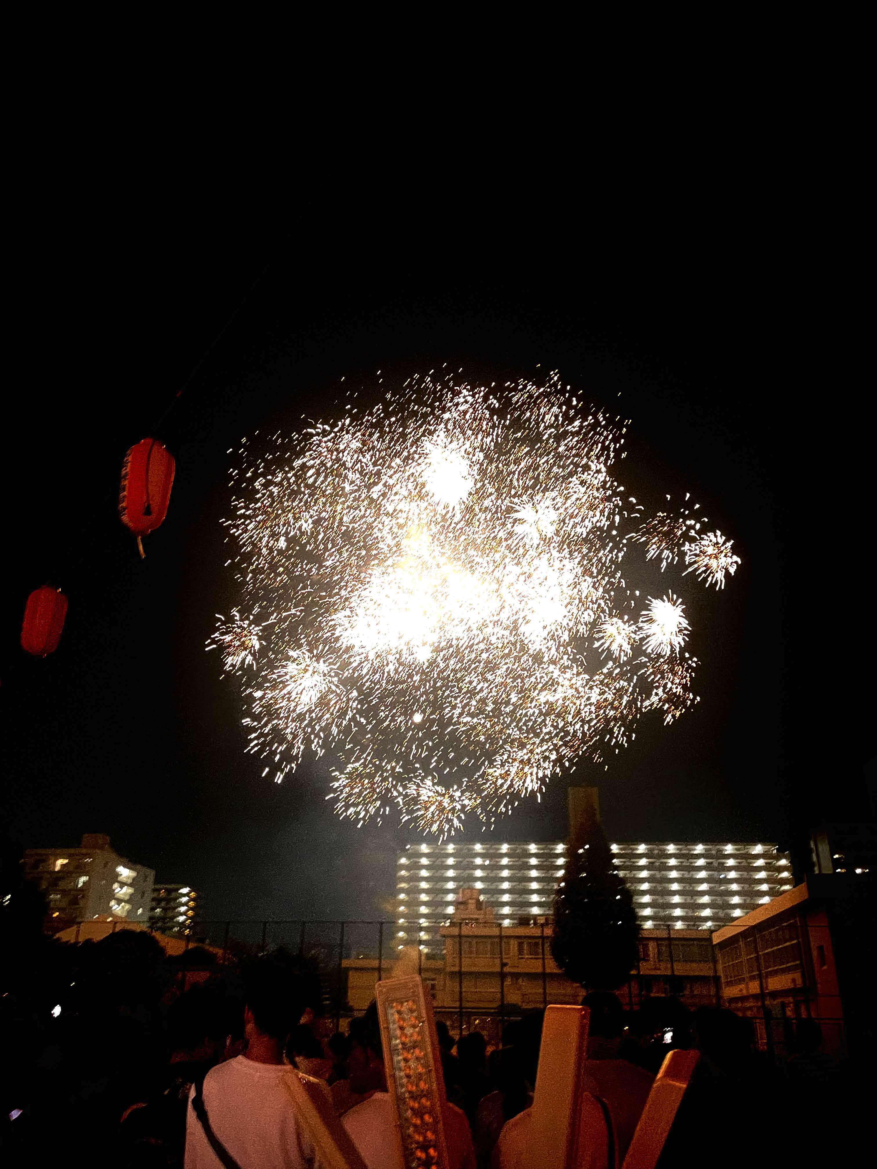 八潮まつりのフィナーレには、地域に縁のある花火師たちによる花火が打ち上げられました。今年も大勢の観客が、次々に打ち上がる大迫力の花火に大きな歓声を送っていました。