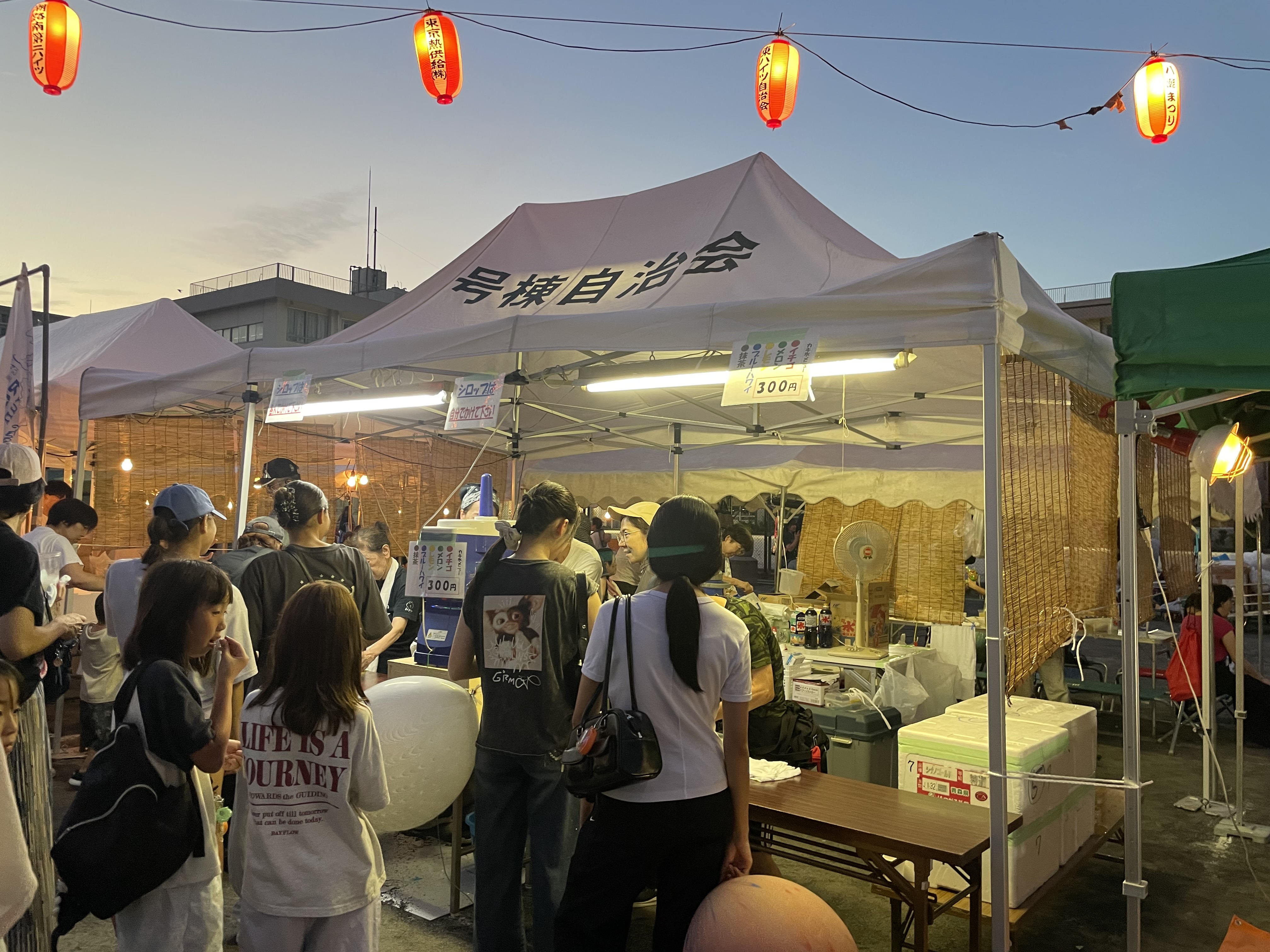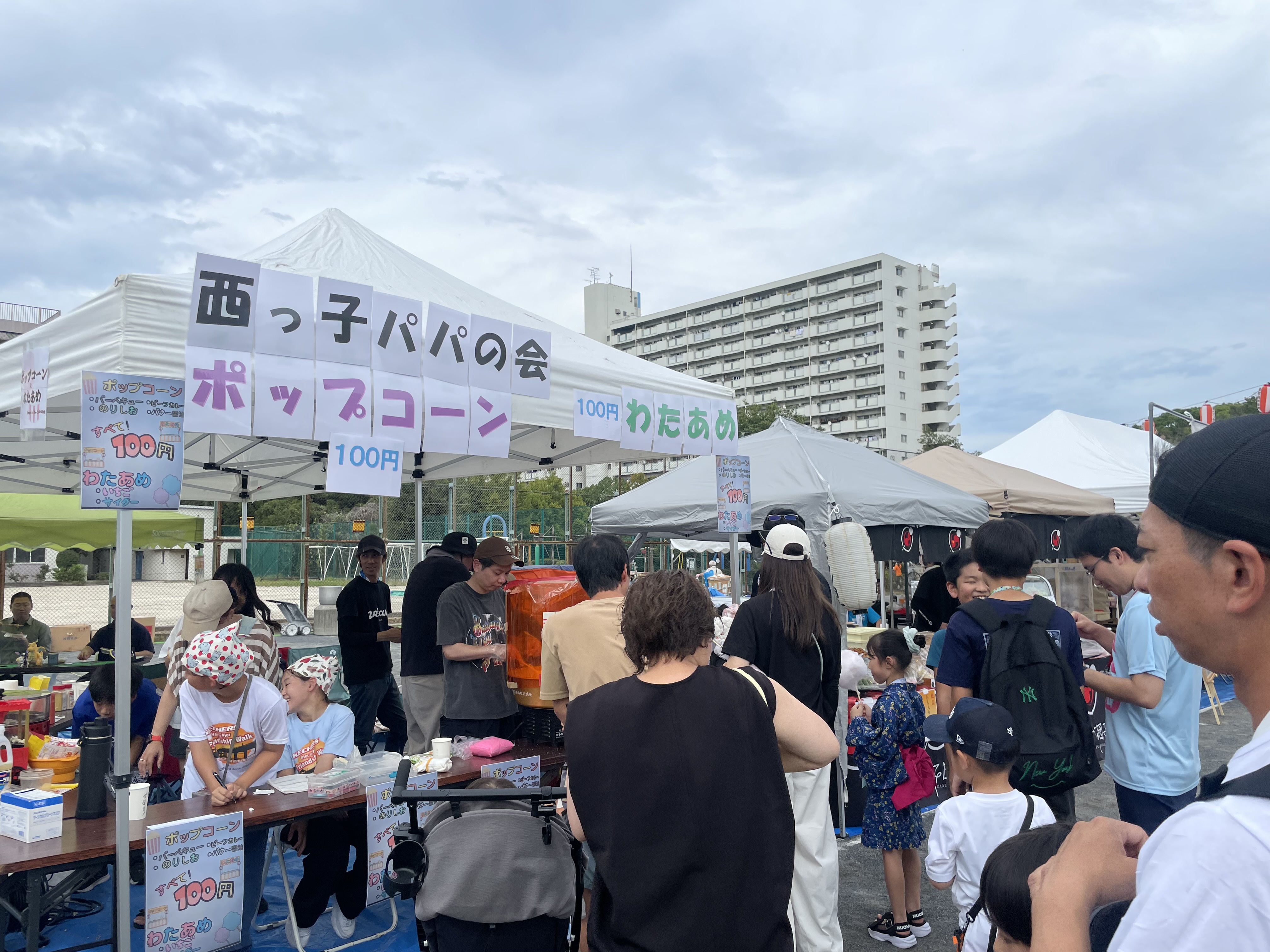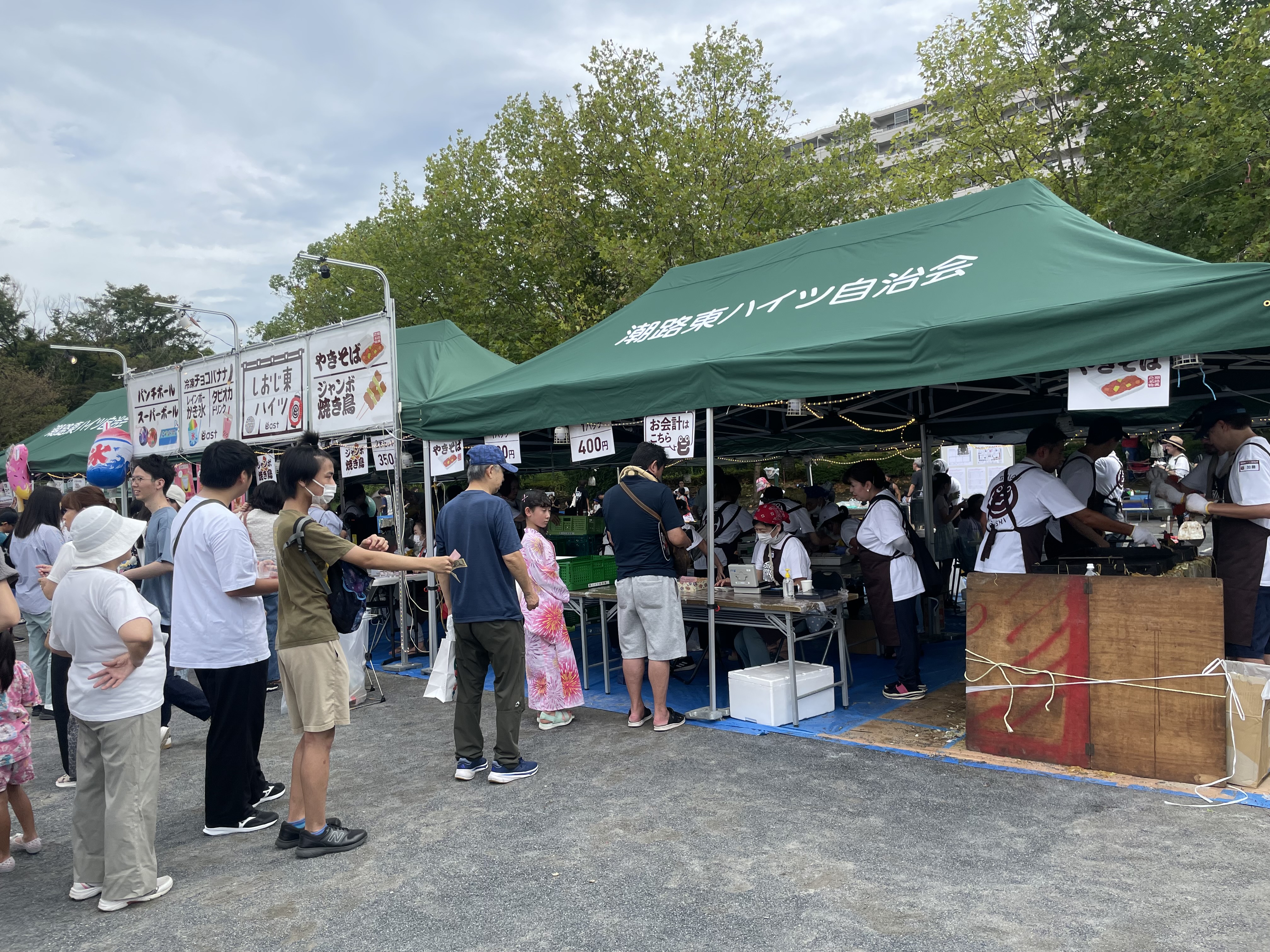 今年も多くの自治会や企業等から模擬店やキッチンカーが出店されました。地域の方々が腕を奮って調理した焼きそばやかき氷・チヂミ・ポップコーンなどが販売され、お店の前には買い求める方で長蛇の列ができていました。