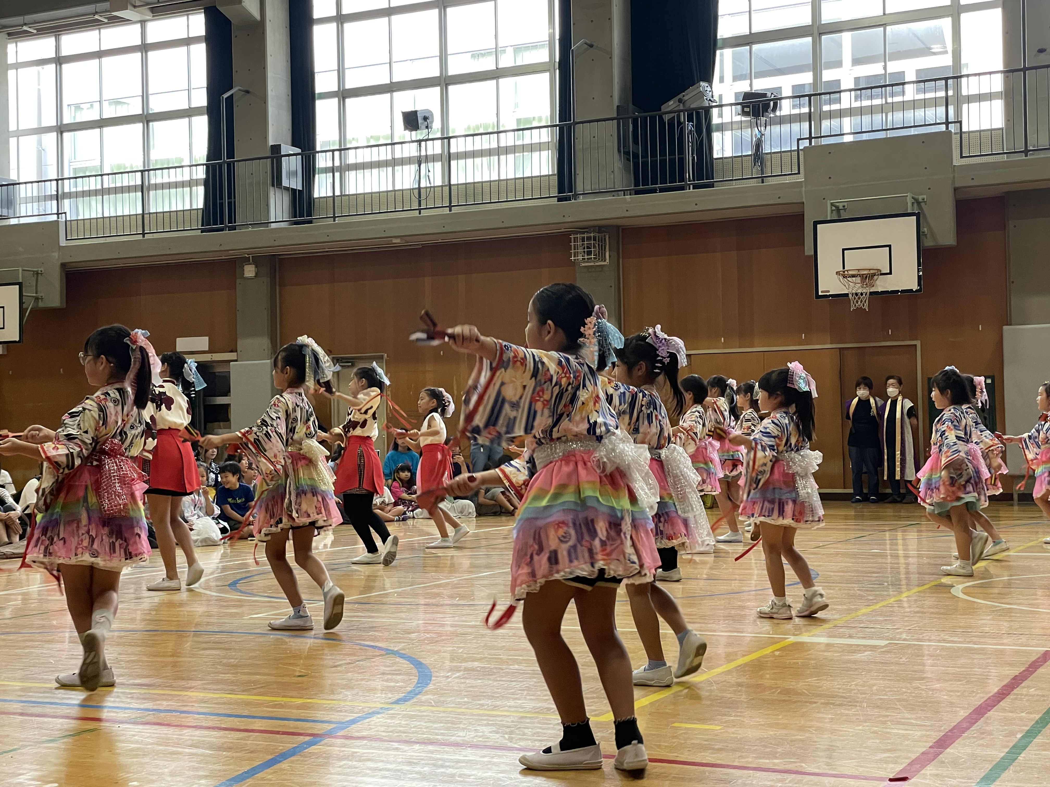 八潮学園の第二体育館では、八潮学園吹奏楽部による演奏や地域の子供たちによるダンスなどが披露され、たくさんの観客で盛り上がりました。子どもダンスパーティーには体育館がいっぱいになるほどの子供たちが参加し、特に大きな盛り上がりを見せていました。