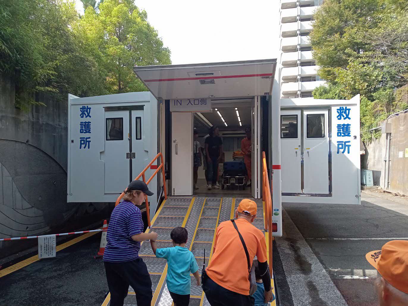 また八潮地域センターでは本部CMCを開設し、無線機・防災タブレットを使用して各避難所の状況をリアルタイムで把握。さらに救護所ではスーパーアンビュランス車の見学ができました。