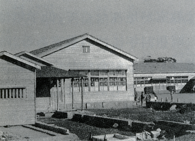 品川区立宮前小学校,焼け残った土台を使って建てた仮校舎,西側校舎