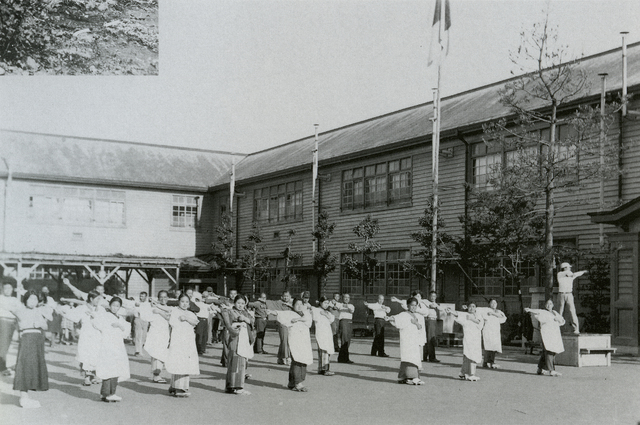 品川区立源氏前小学校1 ID 31754 撮影年月日 1931年(昭和6年) 7月 撮影場所 内容 品川区立源氏前小学校,日本に初めてラジオ体操ができたその日から町をあげて行いました,壇上にいるのは校長先生,子どもたちは左はしの方にいます