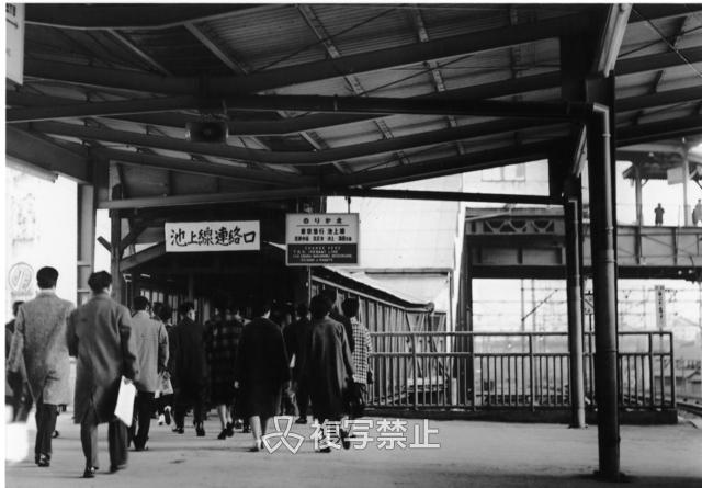 山手線ホームより池上線連絡通路へ向かう人々