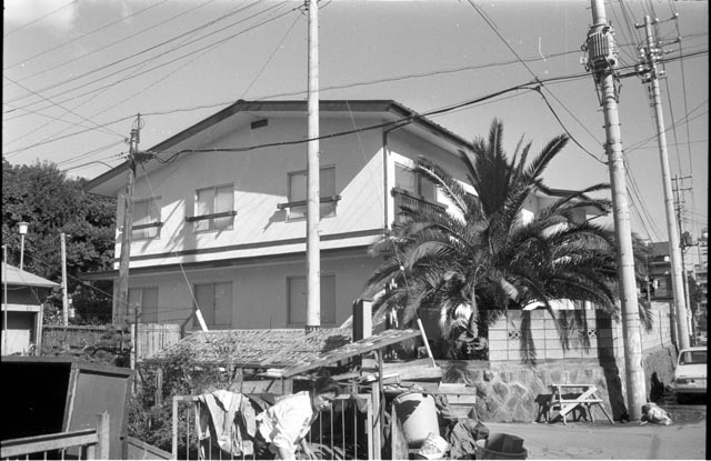 品川荘全景。手前に女性